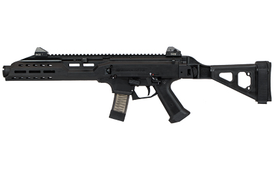 CZ SCORPION EVO 3 S2, Semi- Automatic, 9MM, 4″ Barrel, Polymer Frame, Black Finish, 2 Magazines, 10 Round, SB Folding Brace, Magpul BUIS, Flash Can 01345