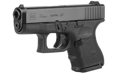Glock 33 Gen4, Striker Fired, Sub Compact, 357 Sig, 3.43″ Barrel, Polymer Frame, Matte Finish, Fixed Sights, 9Rd, 3 Magazines PG3350201