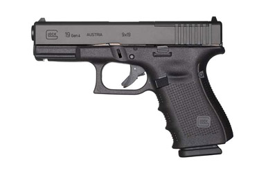 Glock 19 Gen4, Striker Fired, Compact, 9MM, 4.02″ Barrel, Polymer Frame, Matte Finish, Glock Night Sights, 10Rd, 3 Magazines PG1950701