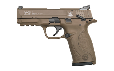 Smith & Wesson M&P Compact, Semi-automatic, Striker Fired, 22LR, 3.6″ Threaded Barrel, 3/8″x 24, Accepts 3/8″x24 to 1/2″x28 Adapter, Polymer Frame, Adjustable Sights, 10 Rounds, 2 Magazines, Flat Dark Earth Cerakote Finish 12570