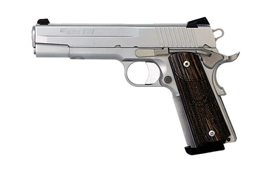 Sig Sauer 1911, Full Size, 45ACP, 5″ Barrel, Steel Frame, Stainless Finish, Black Wood Grips, Night Sights, 8Rd, 2 Magazines, California Compliant 1911-45-SSS-CA