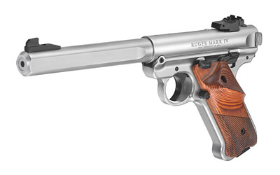 Ruger Mark IV, Target, Semi-automatic, 22LR, 5.5″ Barrel, Stainless Steel Frame, Stainless Finish, Checkered Grips, 10Rd, Threaded Barrel, Adjustable Rear Sight 40126
