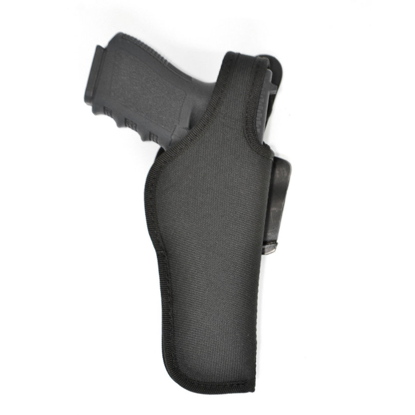 Comfortable, durable and easy to use. The Mashall line is a best seller for outside carry. Nylon made, sturdy snap, suede lined interiors to protect the guns. In two words: A classic. Available in Right and Left handed.