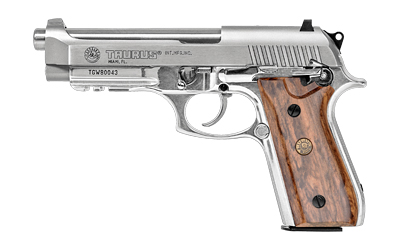 Taurus PT92, 9MM, 5″ Barrel, Stainless Frame, Brazilian Walnut Wood Grips, Drift Adjustable Rear Sight, 2 Magazines, 17Rd 1-920159-17OW