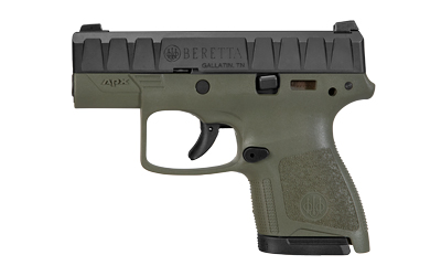 Beretta APX Carry, Semi-automatic, Striker Fired, Sub Compact, 9MM, 3.07″ Barrel, 2 Mags, Modular Polymer Frame, OD Green Finish, White Dot Sights, 6Rd Flush Mag and 8Rd Extended Mag Included JAXN92007