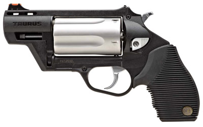Taurus Judge, Public Defender, Medium Frame, 410 Gauge/45LC, 2″ Barrel, 2.5″ Chamber, Polymer Frame, Stainless Finish, Rubber Grips, Fixed Sight, 5Rd 2-441029TCPLY