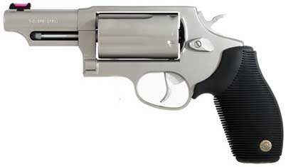 Taurus Judge, 410 Gauge/45LC, 3″ Barrel, 3″ Chamber, Steel Frame, Matte Stainless Finish, Fiber Optic Front Sight, 5Rd 2-441039MAG